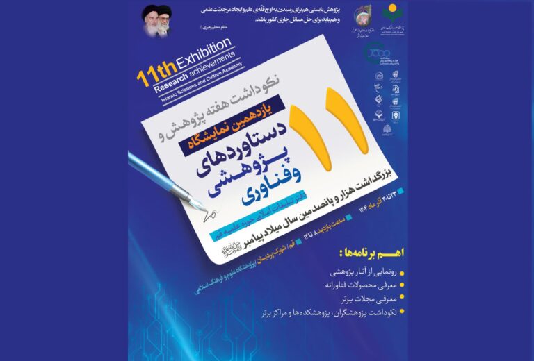 نکوداشت یازدهمین سال دستاوردهای پژوهشی و فناوری بزرگداشت هزارو پانصدمین سال میلاد پیامبر از ۲۳ الی ۳۰ آذرماه از طرف پژوهشگاه علوم و فرهنگ اسلامی